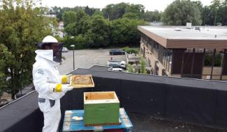 Des ruches installées sur le toit d'un magasin à Braine-l'Alleud