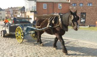Rebecq : entretien d'espaces publics avec un cheval de trait