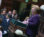 Vendredi 16 novembre 2012Les provinces ont apporté des témoignages dans le cadre de la solidarité entre les générations. Liliane Doyen a représenté le Brabant wallon ce 15 novembre au Parlement. Cette éleveuse du porc Piétrain a véritablement été la vedette du jour par sa gentillesse et son naturel. La Jeune province a en tout cas trouvé ne formidable ambassadrice qui a conquis jusqu'à la famille royale. Pierre Thirion, Geoffrey Baras.