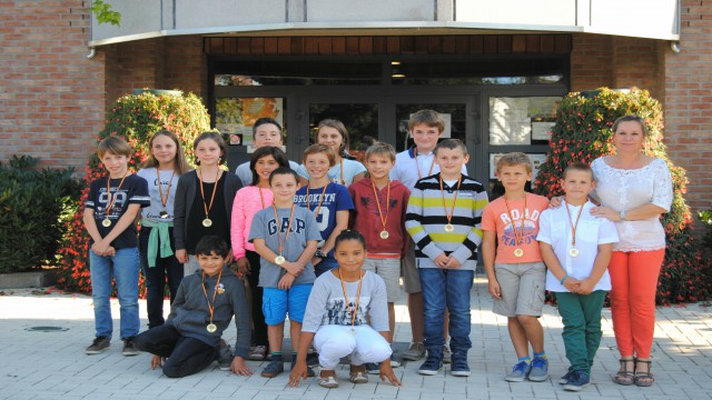 Représentant l'école communale de Marbais : Mathis Prat (5ème), Mathieu Bruyr (5ème), Grégoire Keustermans (6ème) et Luane Raposo Reis (6ème).