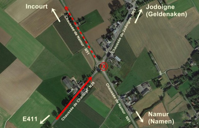 Le comportement agressif d'un des deux conducteurs a engendré un différend entre les deux automobilistes à hauteur du rond-point formé par la Chaussée de Namur (N91) et la Chaussée de Jodoigne (N 29). Suite à quoi, le passager d'un véhicule est sorti de sa voiture pour aller discuter avec l'autre automobiliste. Le conducteur a, alors, délibérément foncé sur le passager et l'a renversé. La victime a été projetée en avant et est retombée devant le véhicule qui lui est passé sur le corps en prenant la fuite en direction d'Incourt. La victime a été transportée en ambulance dans un état critique.