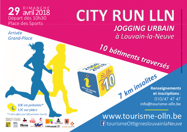 Pour son 10ème anniversaire, l'Office du Tourisme-Inforville d'Ottignies-Louvain-la-Neuve va organiser le dimanche 29 avril un événement inédit et original : un jogging urbain à travers la cité universitaire. Ce 'City Run' de 7 kilomètres traversera 10 bâtiments !